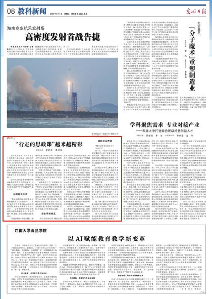 在经典音乐中,四川大学近千名师生与线上不雅众一同总结中国共产党的百年征途;西南交通大学,在“食光分享”师生午餐会上,师生空谈学业、生存中的挑战和难题;遴派教师走进中小学,吸纳中小学教师担任本校学生推行导师,绵阳师范学院通过这种形状鼓励大中小学想政课一体化建造……