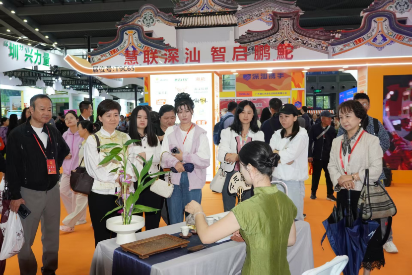 一旁的莲花山茶茶艺饰演区一样东说念主气充足。茶艺师以娴熟身手冲泡,茶香四溢,为代表们带来视觉与味觉的双重享受,纯真传递出汕尾深厚的茶文化底蕴。